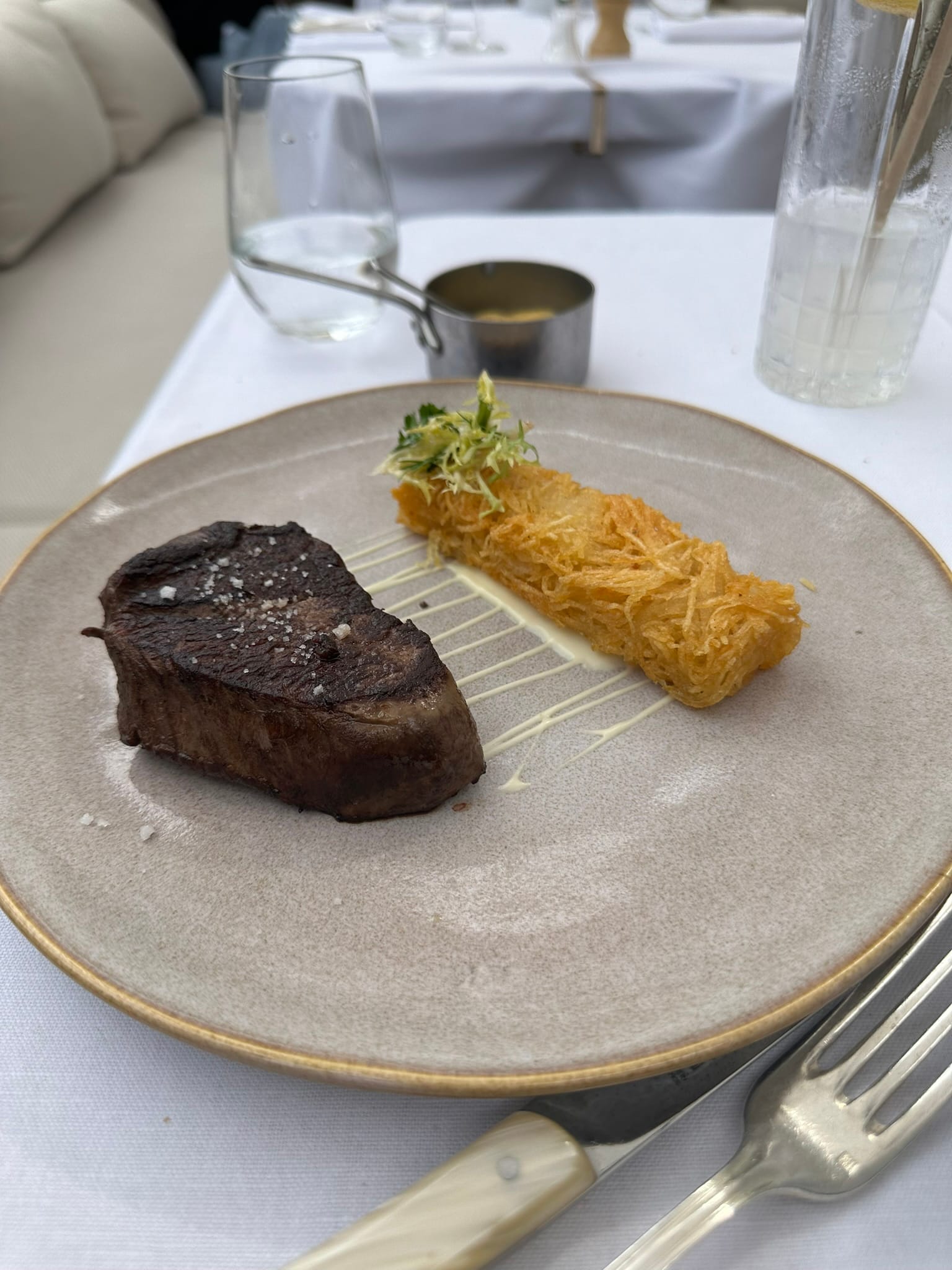 The filet mignon arrived alongside a shredded potato gratin, paired with a classic béarnaise sauce. Though presented with a sleek, modern plating, the dish was surprisingly underwhelming. If you’re dining at Girafe, I’d suggest staying with the seafood—it’s where the kitchen truly shines.