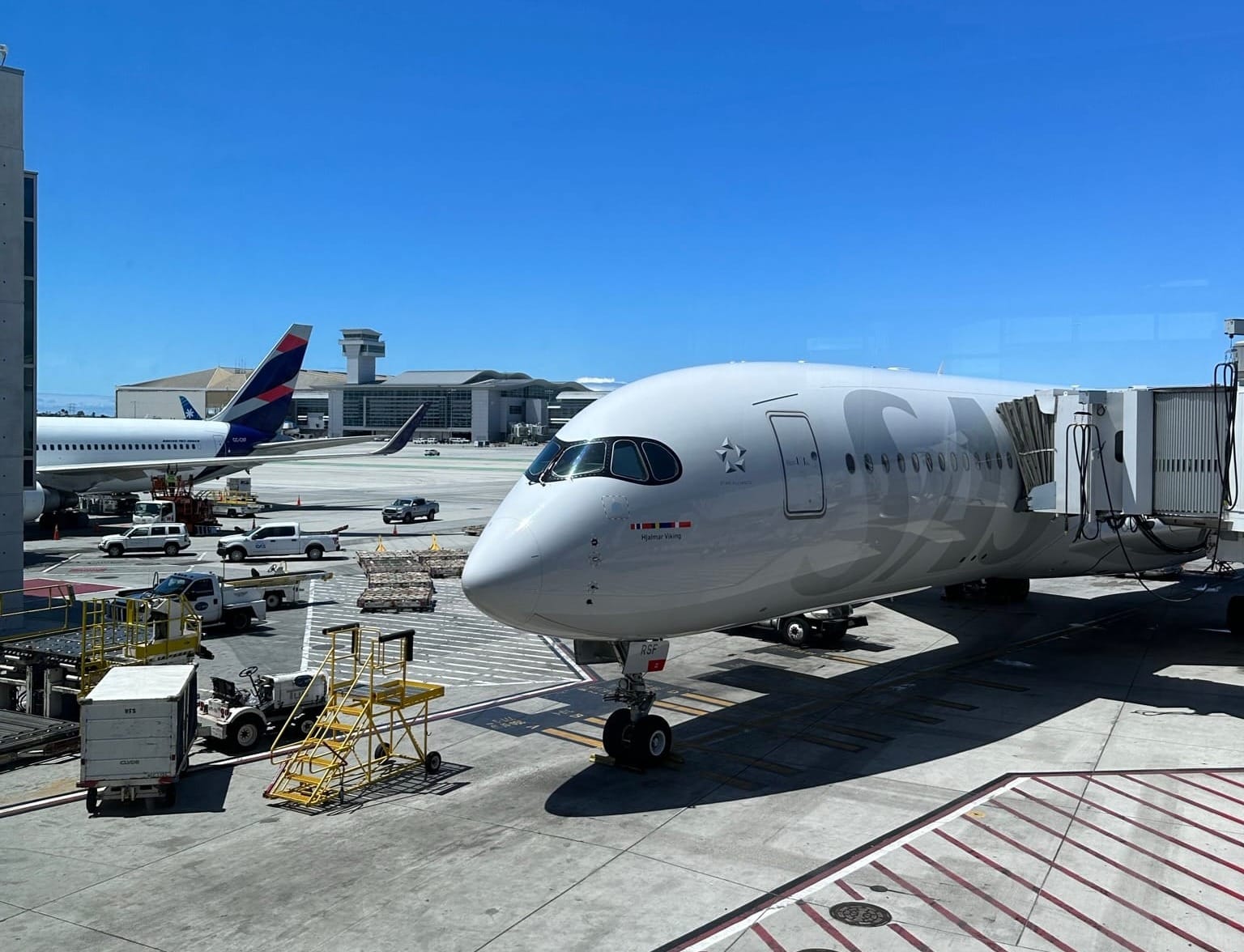 This aircraft, operated by SAS, is the fresh, relatively new Airbus A350-900. It features 40 luxurious lie-flat business class seats, 32 recliner economy plus seats, and 228 standard economy seats. Each seat is equipped with in-flight entertainment touch screens, headphone aux plugs, AC and USB power outlets, in-flight Wi-Fi, and multiple meal services. It’s designed to make even the longest journeys comfortable, no matter where you’re sitting.