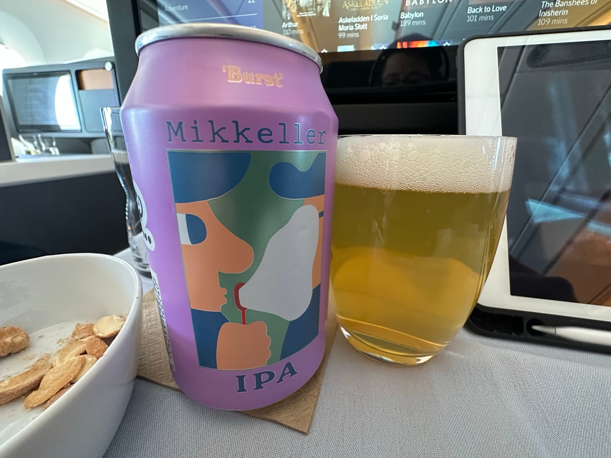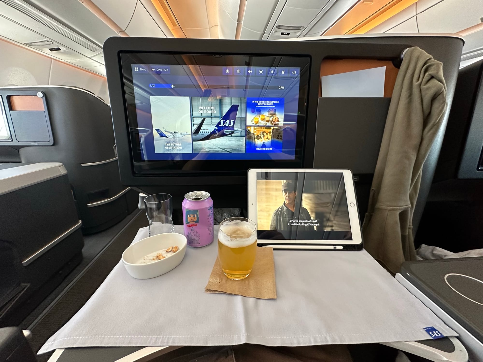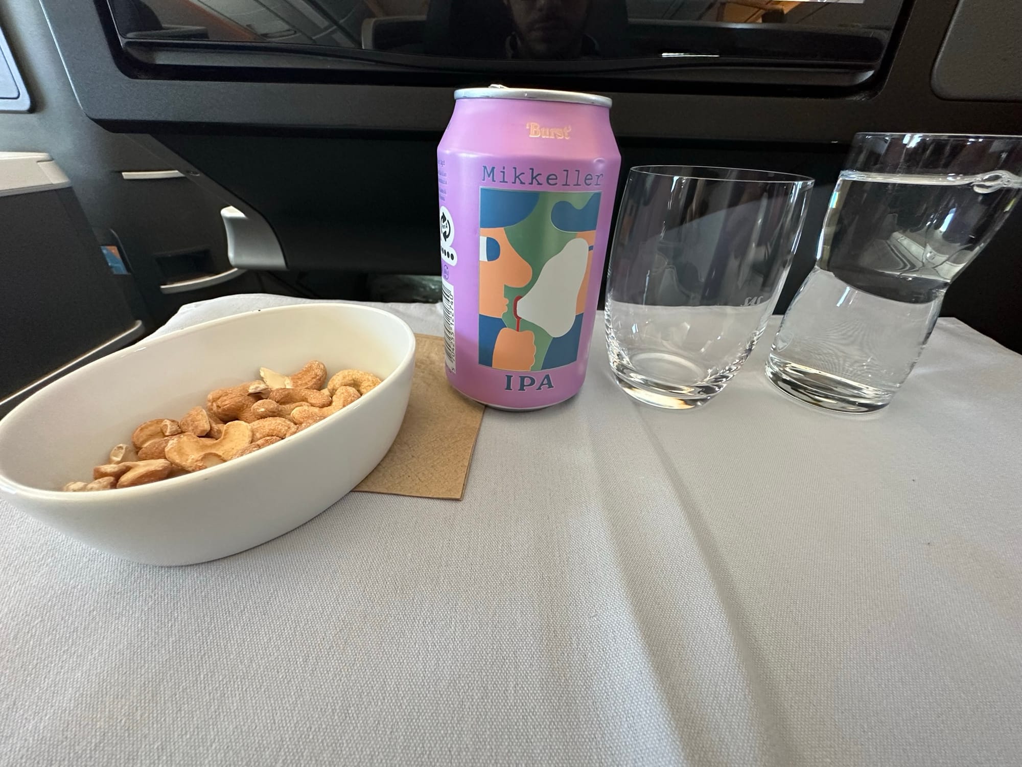 As soon as you enter the cabin and set your things down in your seat, you are greeted by a SAS flight attendant with a warm towel and a crisp, cold glass of champagne. Settle into your seat, sip your champagne, and prepare for departure. Before you know it, the flight attendants are back, this time offering a bowl of warm, roasted, and salted cashews along with a beverage of your choice. I opted for a Mikkeller IPA, brewed in Denmark.
