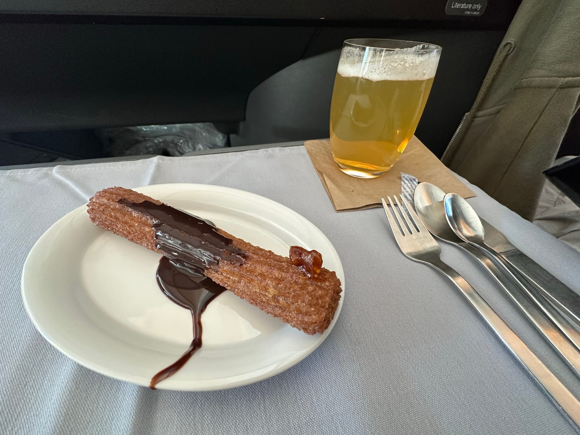 The dessert was a surprising choice: a caramel-filled churro with chocolate sauce poured directly into the center. While I couldn’t help but think that serving the sauce in a bowl for dipping might have been more fitting, the churro itself was delightful—crispy, sweet, and satisfying. It was a relatively small dessert, which was just right after the decadent and filling main course, providing a perfect touch of sweetness without feeling overindulgent.